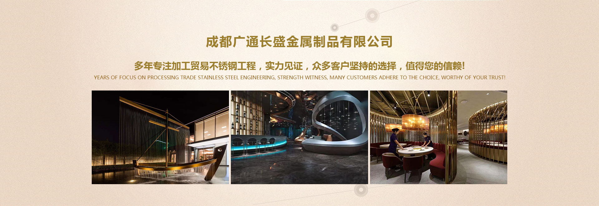 成都廣通長盛金屬制品有限公司是一家集研發、設計、生產加工、銷售和服務為一體的不銹鋼板材批發、不銹鋼制品加工、激光切割加工、不銹鋼剪板折彎加工、金屬制品加工等剪、折、刨、沖孔和焊接制作的成套工藝流程,專業的技術精品制作、工程制作施工于一體的綜合性實力企業。
